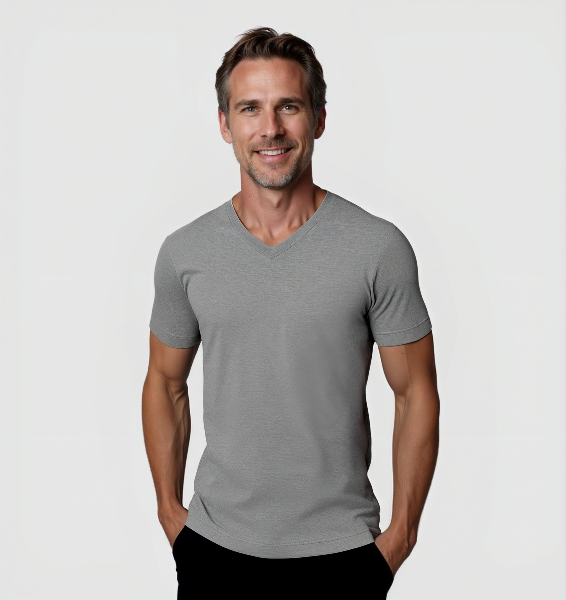 Découvrez notre t-shirt haut de gamme ajusté avec un col V. Il combine confort et style, grâce à une coupe contemporaine et sportive qui met en valeur la silhouette.